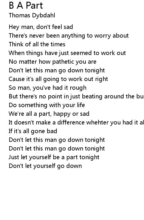 Hey man, don't feel sad |