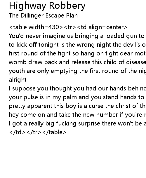 You'd never imagine us bringing a loaded gun to the ballroom this party's about to kick off tonight is the wrong night the devil's own are only starting up the first round of the fight so hang on tight dear mother the needle is jabbing the womb draw back and release this child of disease this mob is a riot the outlaw youth are only emptying the first round of the night 'cause everything's not alright |