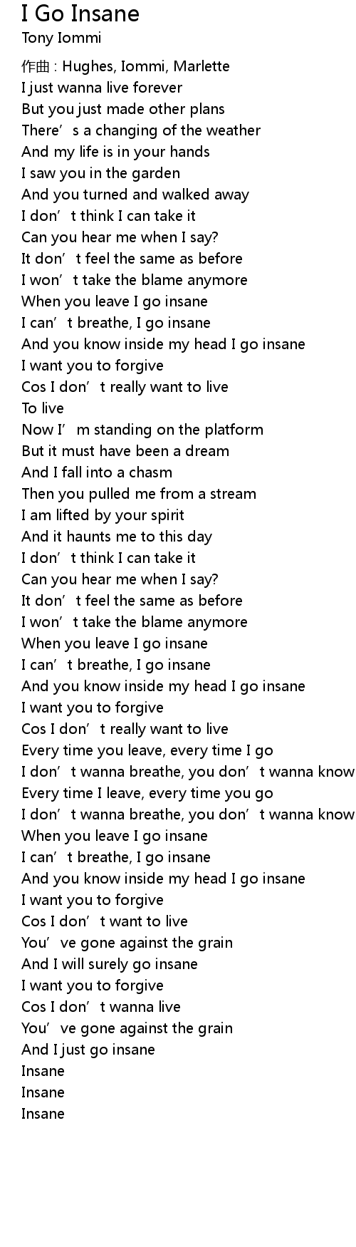 | 歌曲 | I Go Insane |