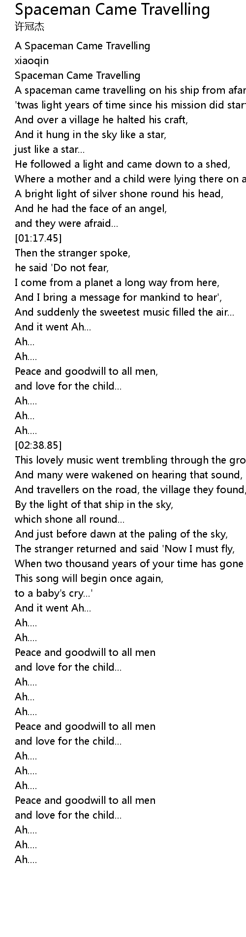 Spaceman Came Travelling |
