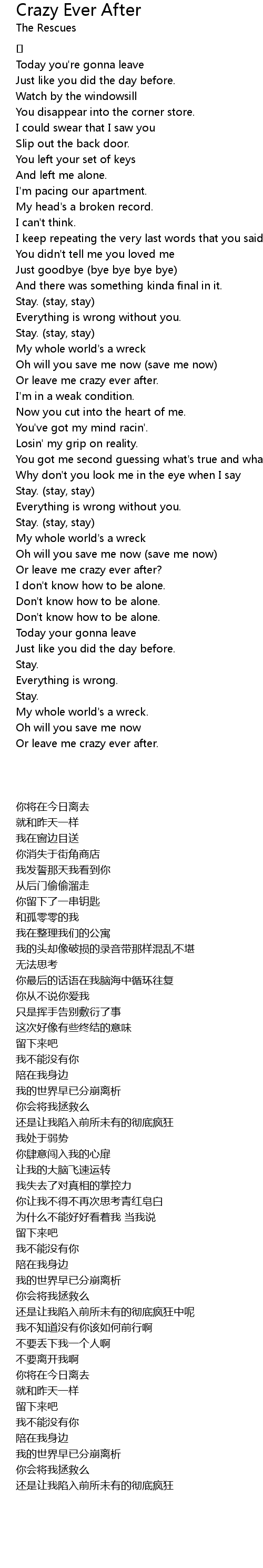 | [01:34.483] | Or leave me crazy ever after. |