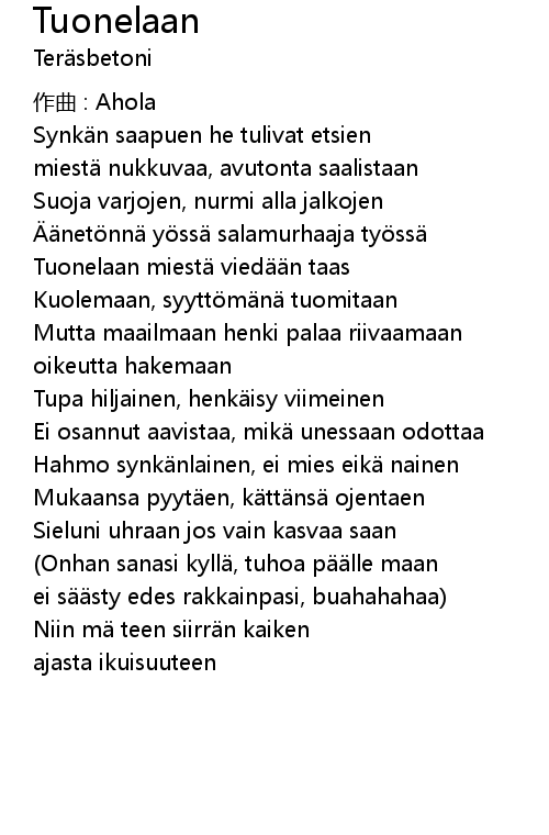 | Onhan sanasi kyll, tuhoa p lle maan | |