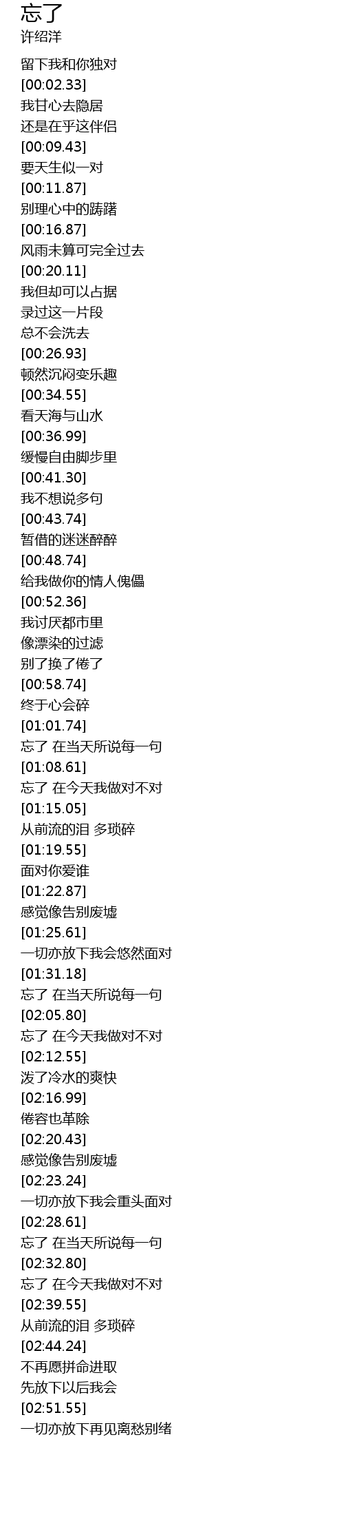 | [02:33.55] | 忘了 在今天我做对不对 |