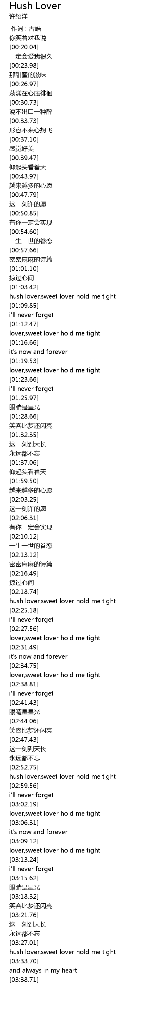 | [03:29.57] | hush lover, sweet lover hold me tight |