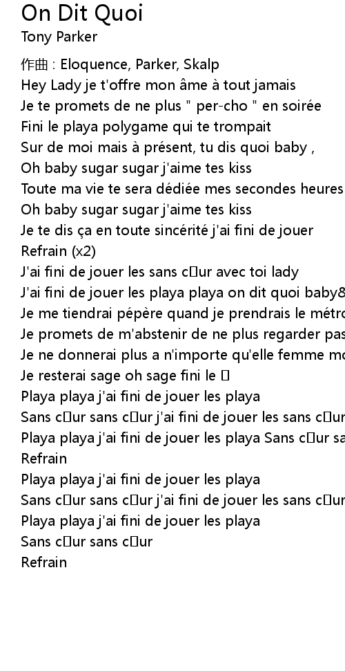 | J' ai fini de jouer les sans c ur avec toi lady | |