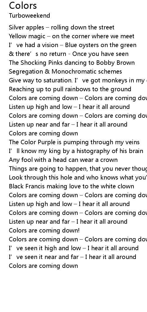 | Colors are coming down – Colors are coming down | |