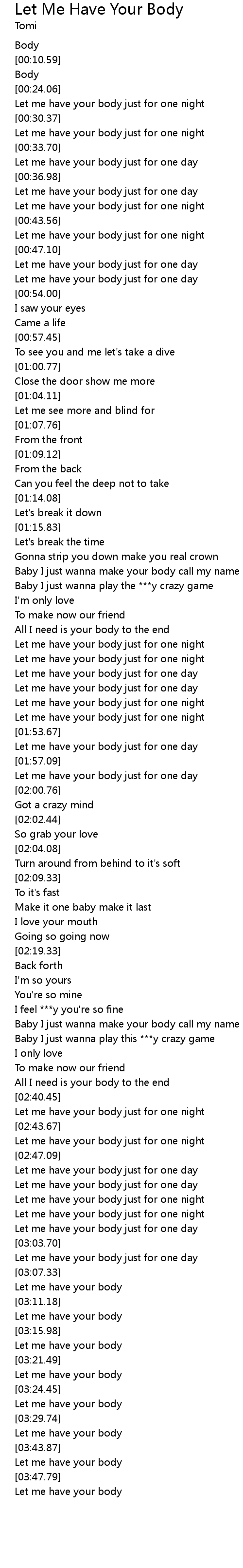 | [02:27.46] | Baby I just wanna make your body call my name |