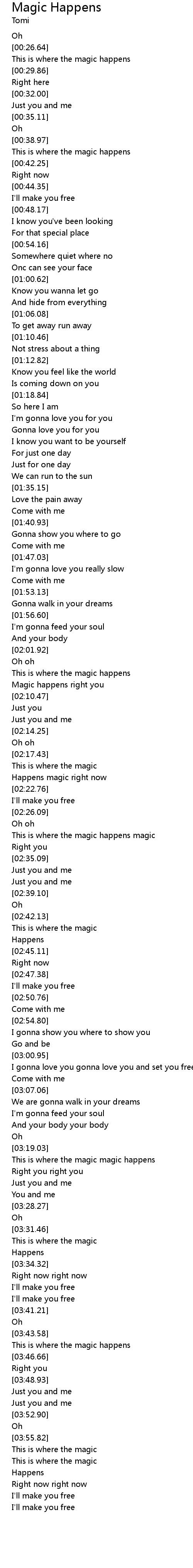 | [03:19.68] | This is where the magic magic happens |