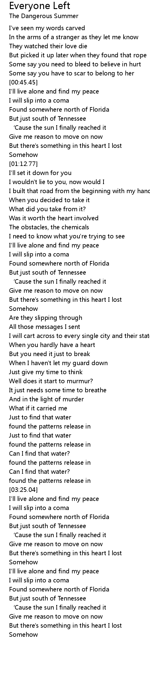 | [00:15.20] | In the arms of a stranger as they let me know |
