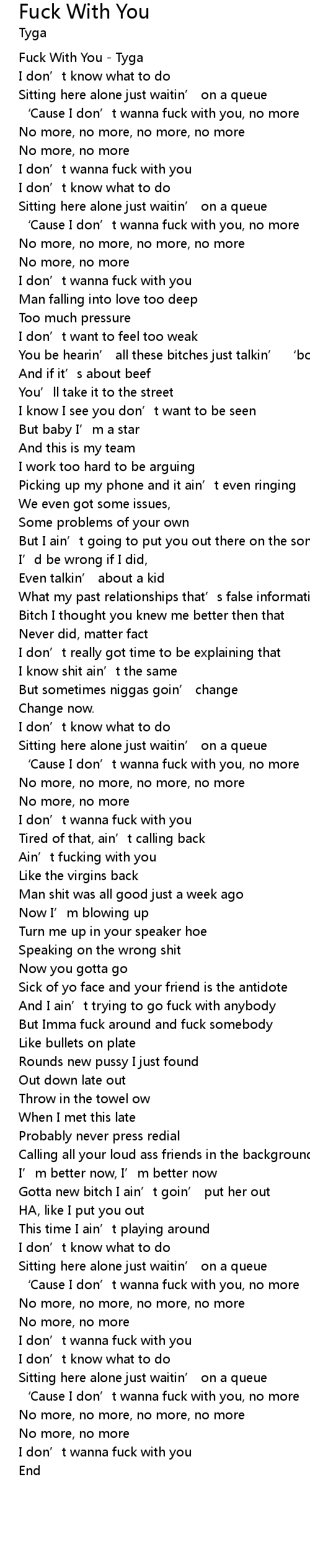 | [00:00.520] | Fuck With You - Tyga |