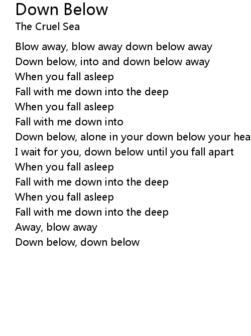 | Down below, down below |