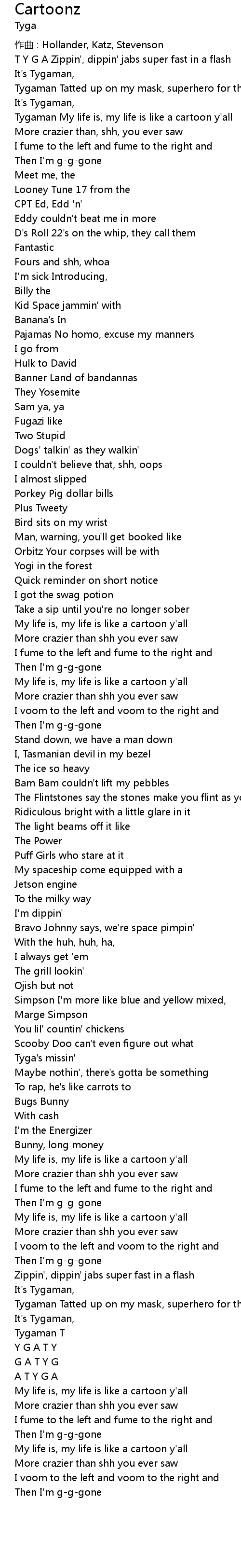 | Tygaman My life is, my life is like a cartoon y'all | |