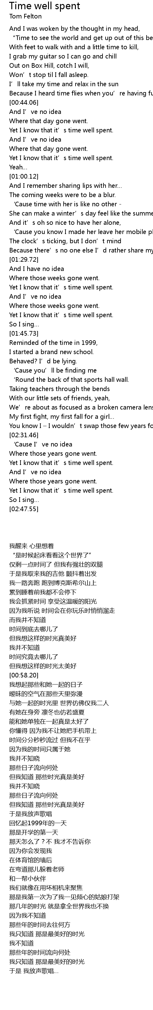 | [02:43.27] | Yet I know that it' s time well spent. |
