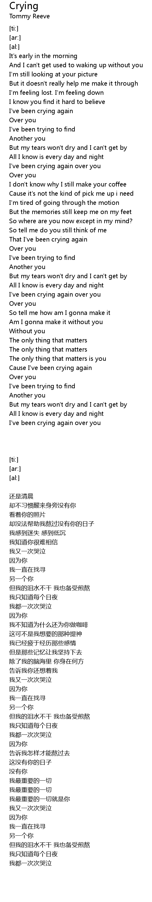 | [02:36.64] | But my tears won't dry and I can't get by |
