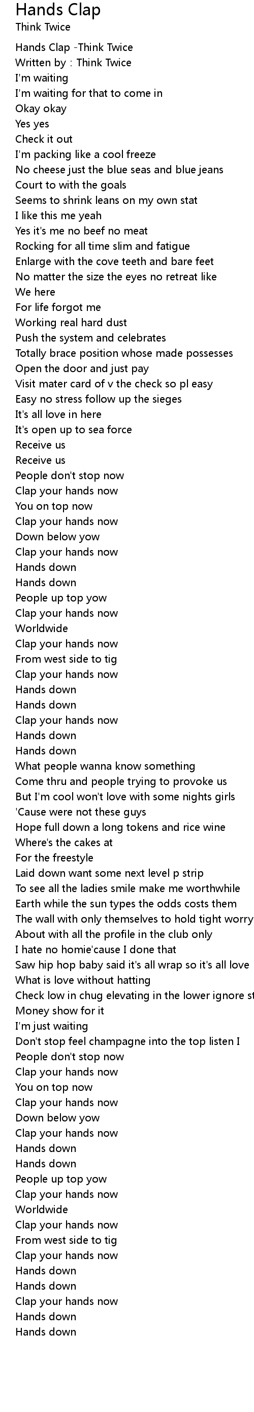 | [00:00.617] | Hands Clap Think Twice |