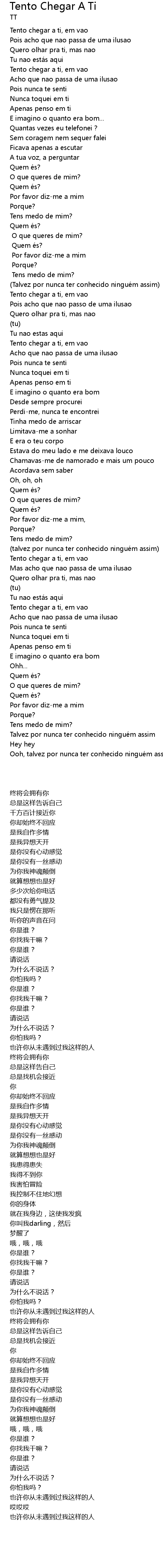 | 歌曲 | Tento Chegar A Ti |