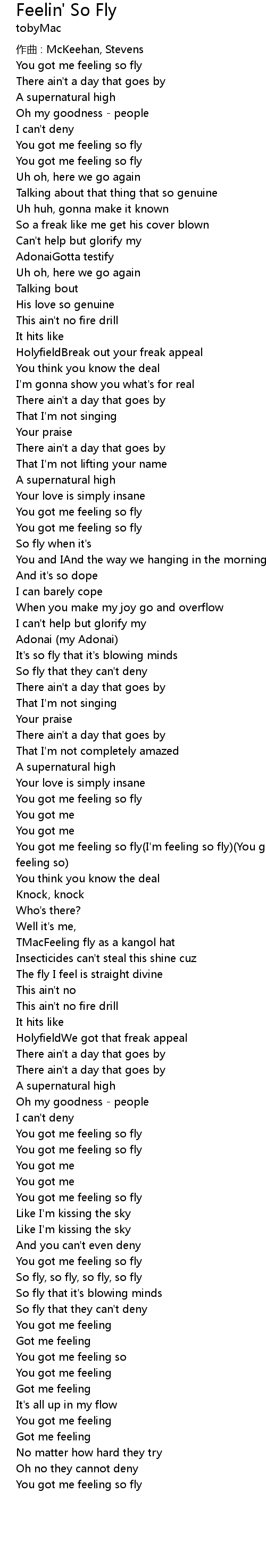 | You got me feeling so fly I' m feeling so fly You got me feeling so fly I' m feeling so | |