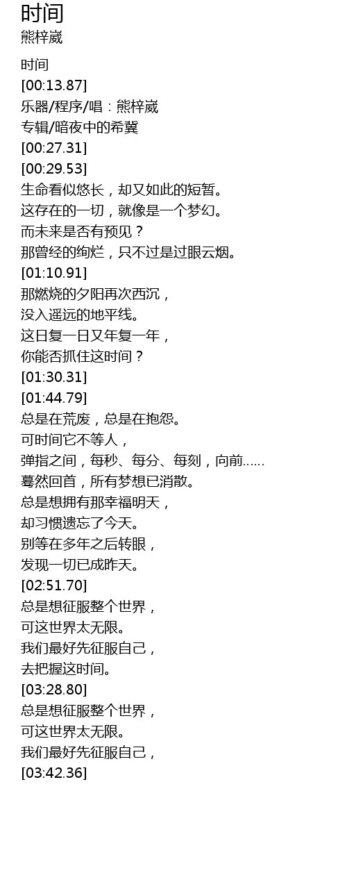 | [00:23.00] | 乐器/程序/唱:熊梓崴 |