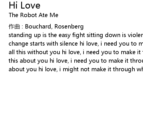 | standing up is the easy fight sitting down is violent sometimes the way to change starts with silence hi love, i need you to make it through hi love, whats all this without you hi love, i need you to make it through hi love, what' s all this about you hi love, i need you to make it through hi love, what' s all this about you hi love, i might not make it through what' s this life without you |