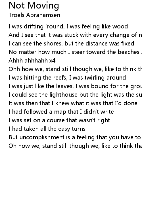 Oh how we, stand still though we, like to think that we're moving x2 |