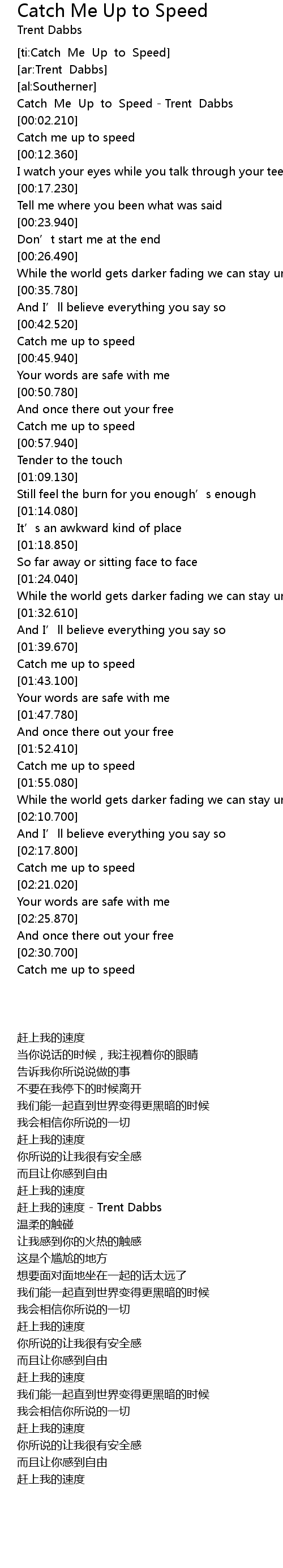 | [0-1:59.950] | 赶上我的速度 - Trent Dabbs |