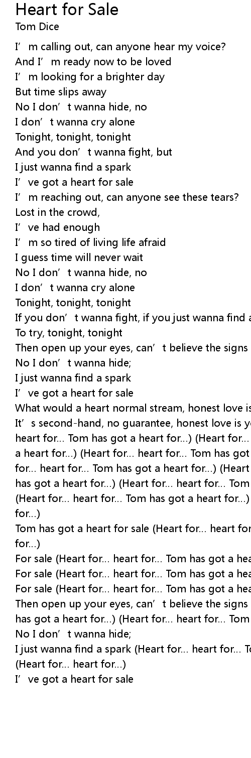 | It' s secondhand, no guarantee, honest love is yours to keep Heart for heart for Tom has got a heart for Heart for heart for Tom has got a heart for Heart for heart for Tom has got a heart for Heart for heart for Tom has got a heart for Heart for heart for Tom has got a heart for Heart for heart for Tom has got a heart for Heart for heart for Tom has got a heart for Heart for heart for | |