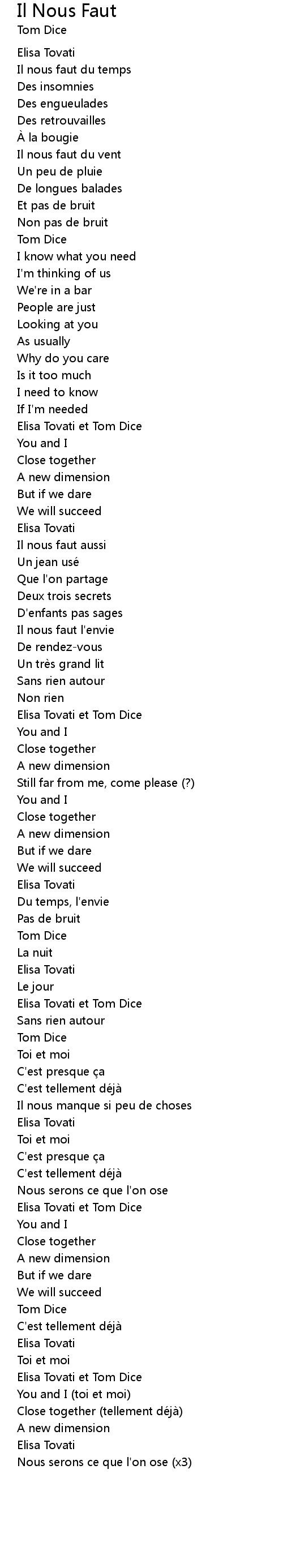 | 歌曲 | Il Nous Faut |