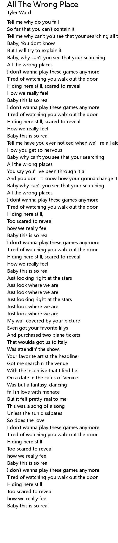| [00:33.12] | All the wrong places |