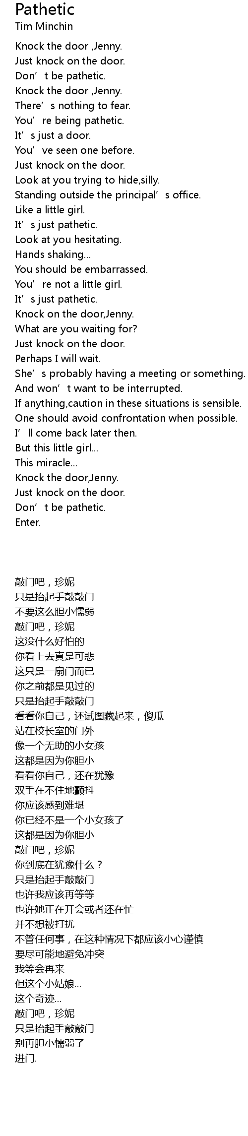 | [00:49.51] | Knock on the door,Jenny. |