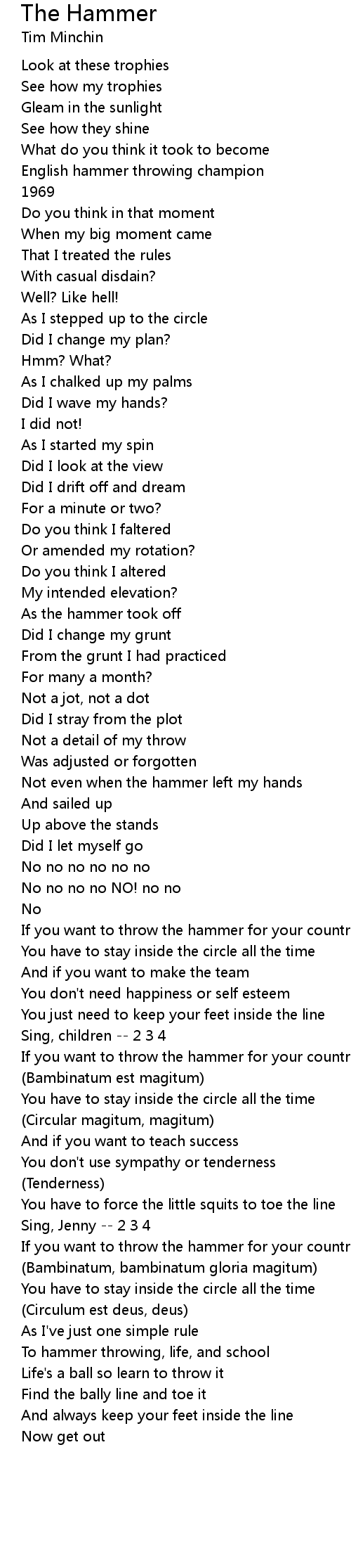 Not even when the hammer left my hands |