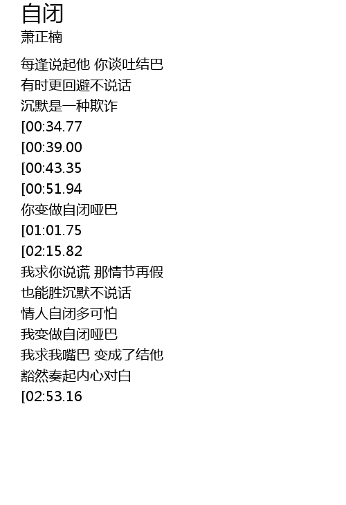 | [03:02.58][02:53.16][02:43.75] | 无言共对多可怕 |