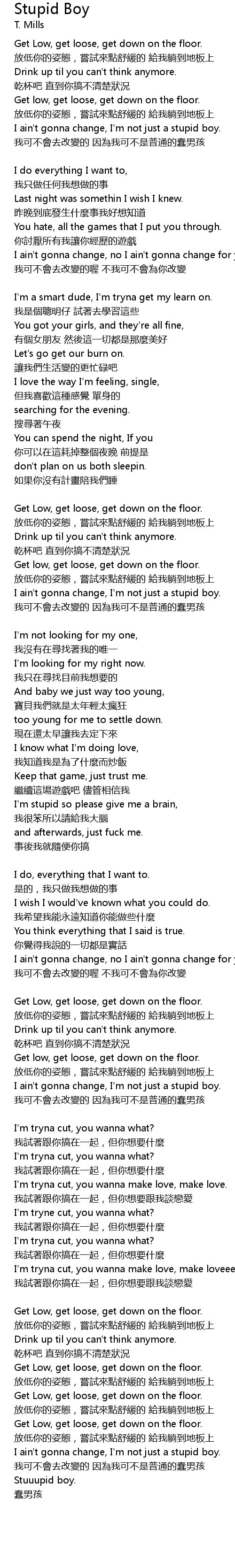 | I ain' t gonna change, I' m not just a stupid boy. | |