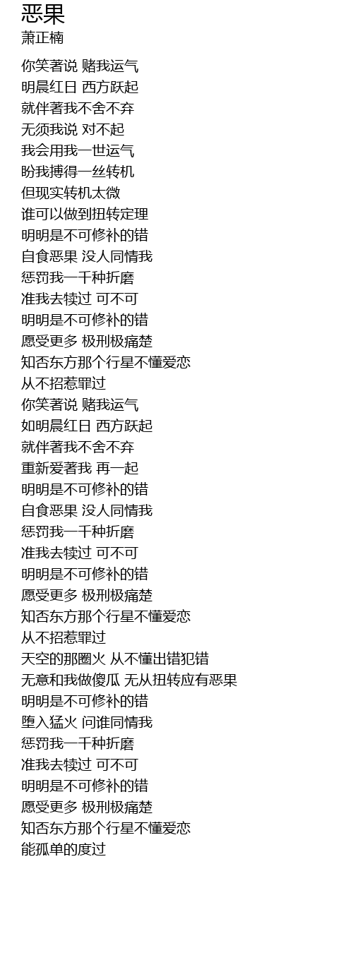 | 歌曲 | 恶果 |