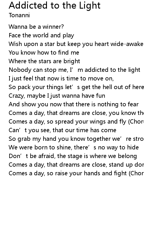 | Nobody can stop me, I’m addicted to the light | |