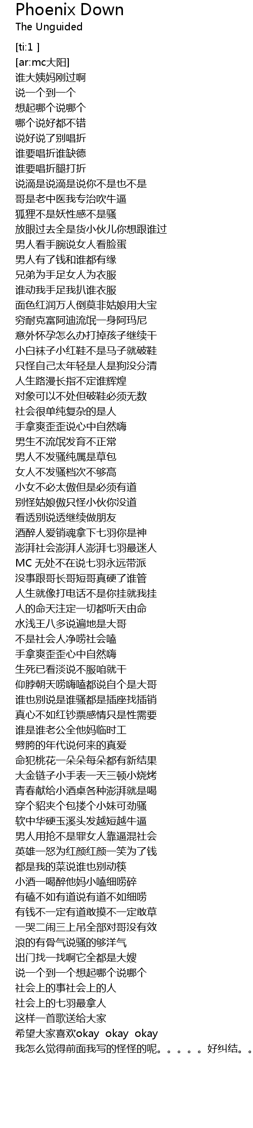 | [00:59.257] | 男生不流氓发育不正常 |