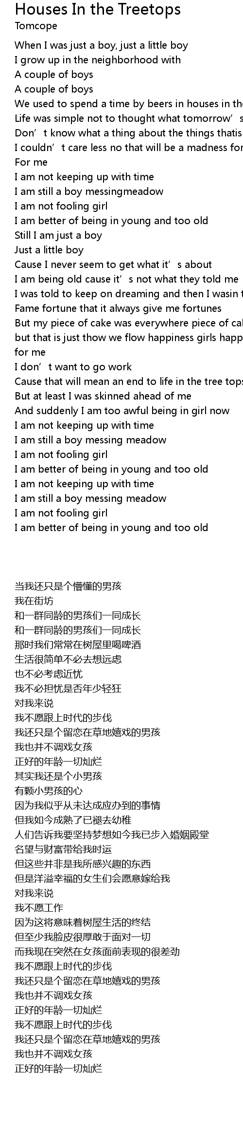 | [00:39.50] | I am still a boy messingmeadow |