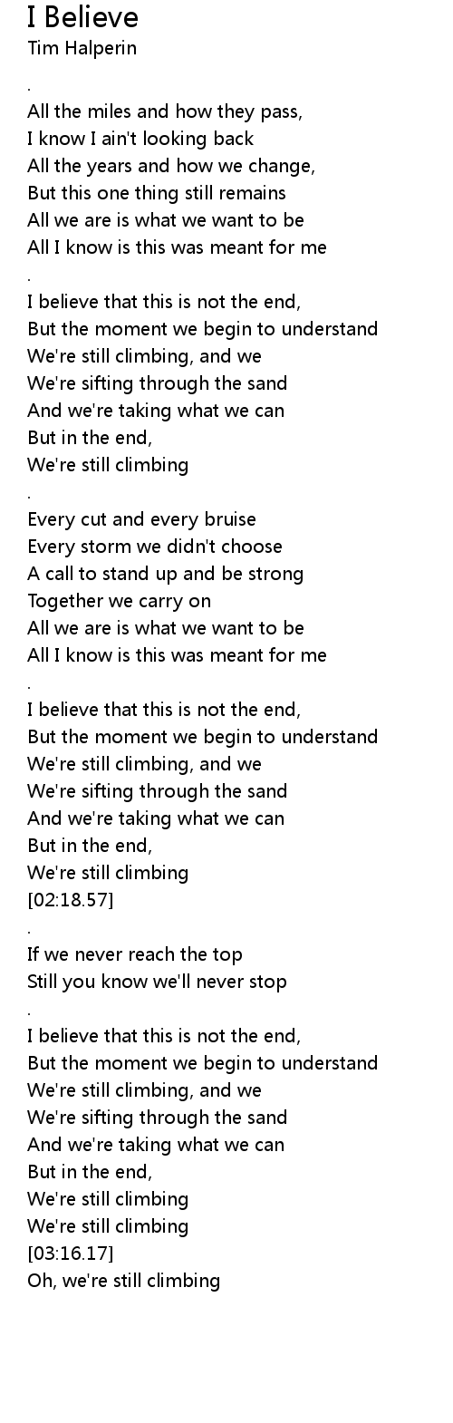 I believe that this is not the end, |