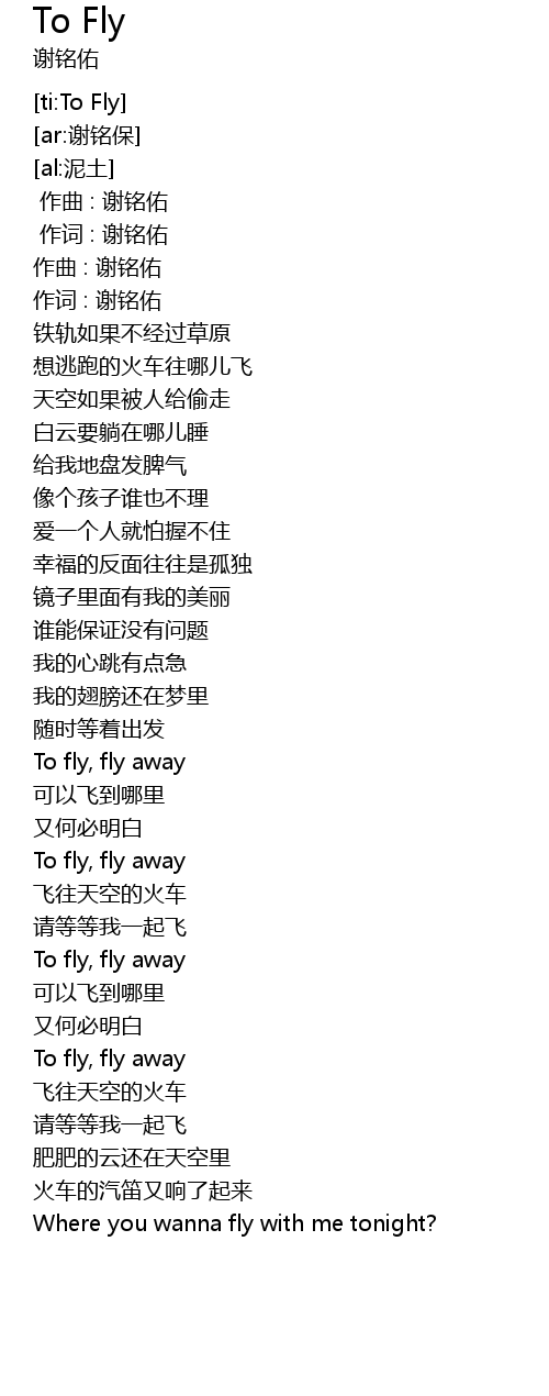 | [02:16.86] | To fly, fly away |
