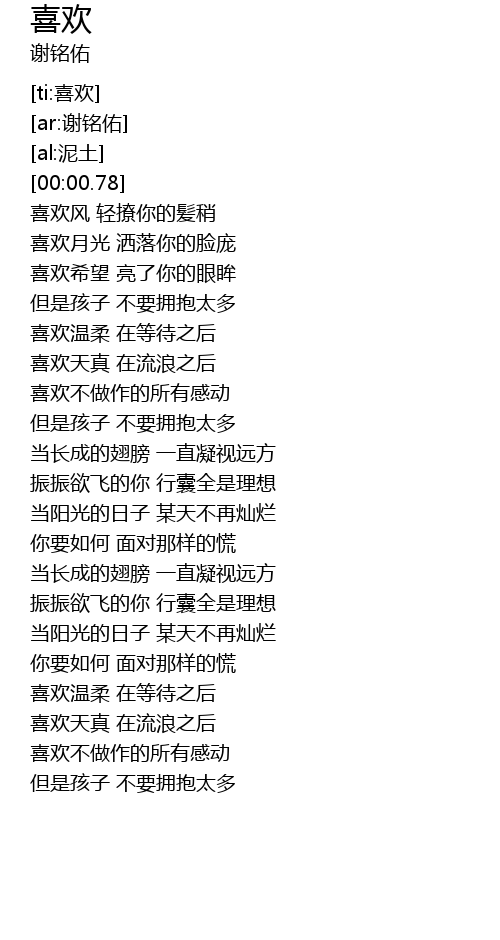 | [01:18.42] | 喜欢天真 在流浪之后 |