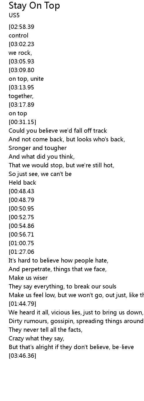 Stay On Top 歌词