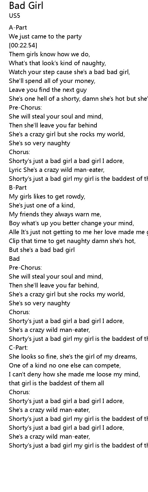 She's one hell of a shorty, damn she's hot but she's a bad bad girl, |