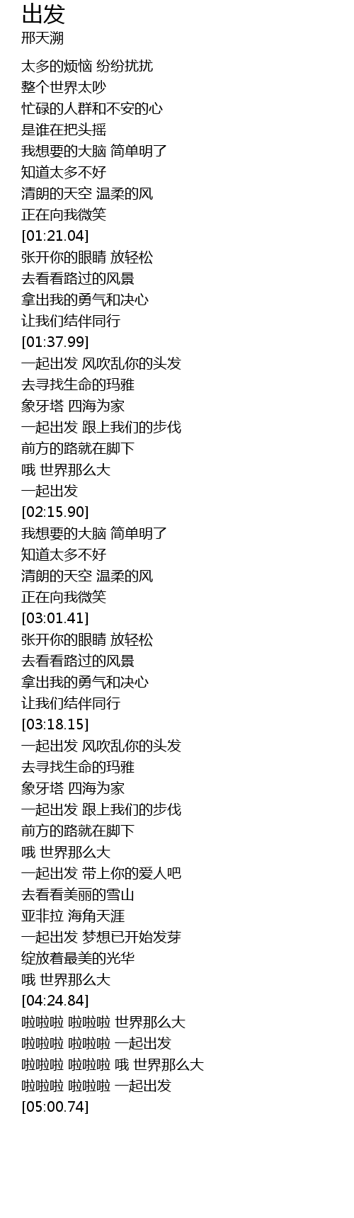 | [04:50.41] | 啦啦啦 啦啦啦 一起出发 |