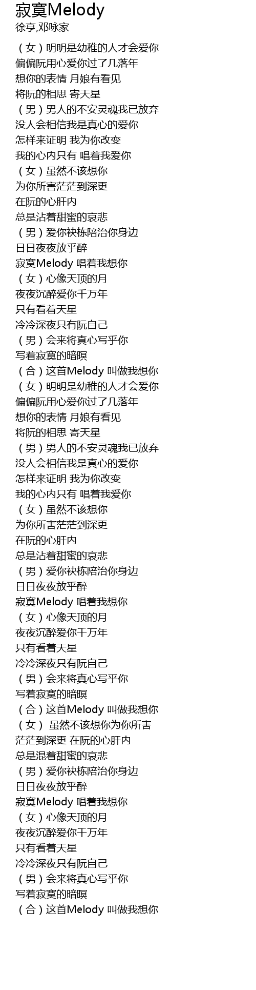 | [04:49.88] | 寂寞Melody 唱着我想你 |