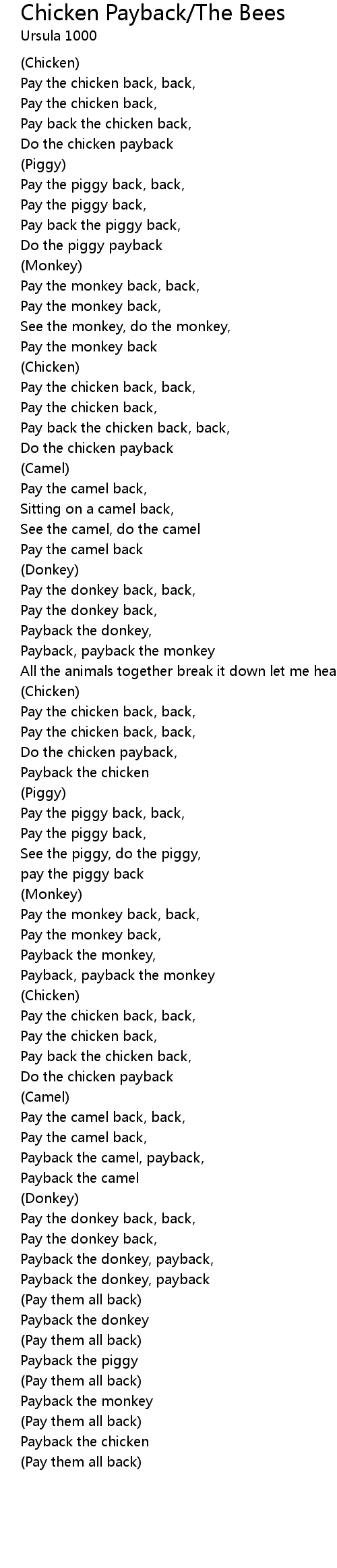 Chicken Payback/The Bees 歌词