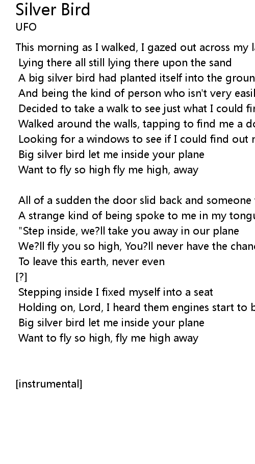 Big silver bird let me inside your plane |