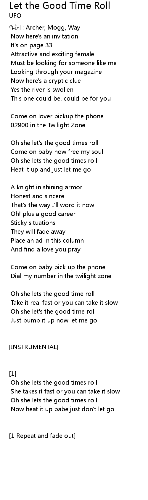 | Oh she let's the good time roll | |