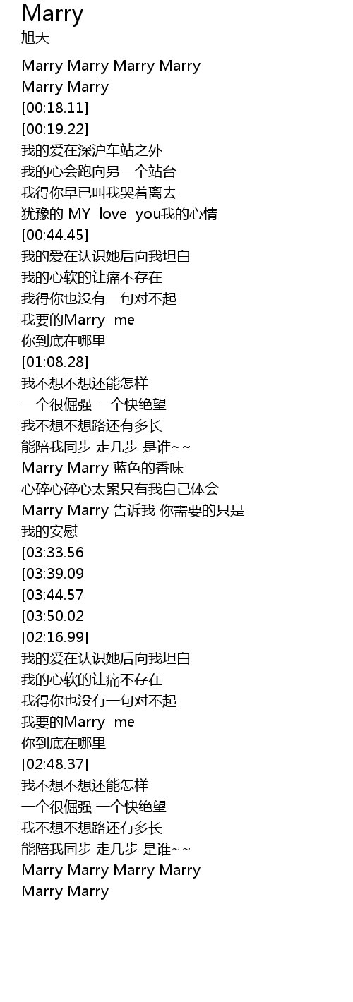 | [04:06.93][03:44.57][03:22.34][02:04.18] | Marry Marry 告诉我 你需要的只是 |