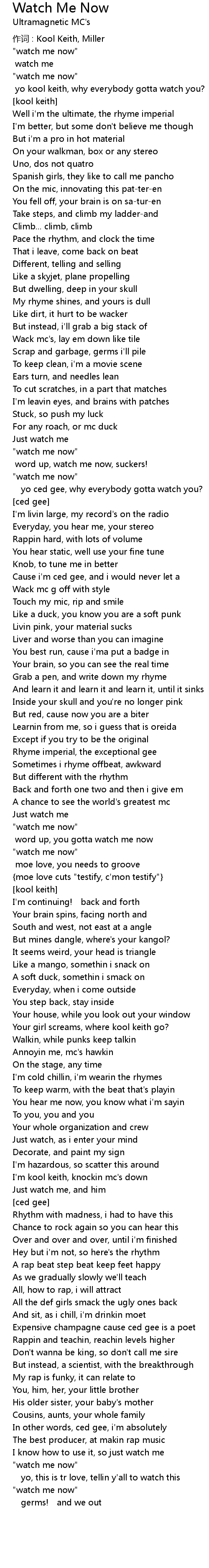 | ced gee yo kool keith, why everybody gotta watch you? | |