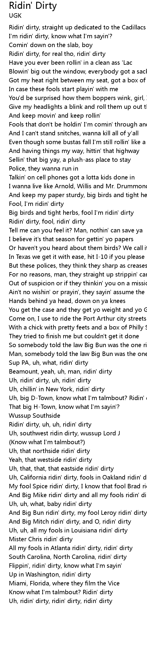 Uh, ridin' dirty, ridin' dirty, ridin' dirty |