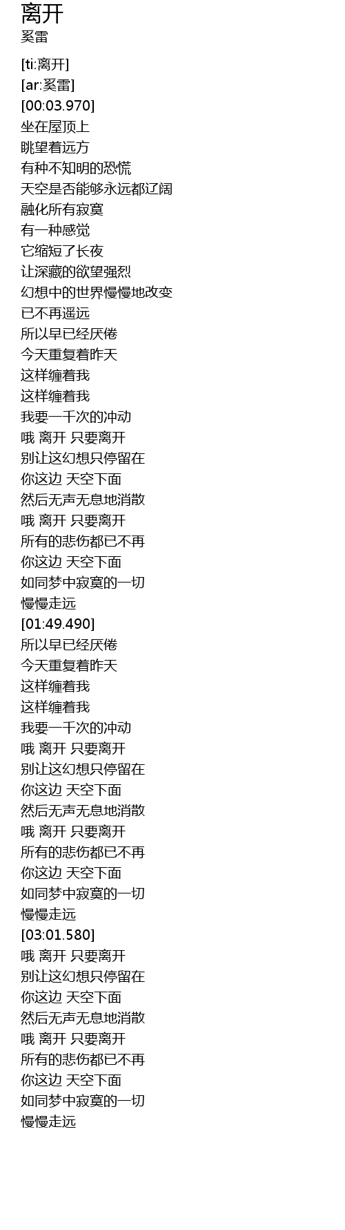 | [01:30.900] | ó lí kāi zhǐ yào lí kāi |